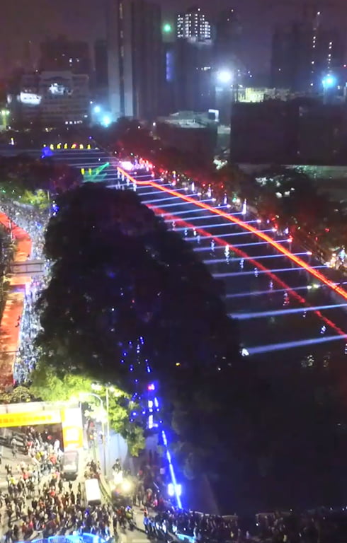 彩色汾江项目设计按照“一轴,两带,多点”的灯光创意理念,把规划地段凝聚成一幅以剪纸、粤剧等佛山最具代表性的文化元素,结合现代、时尚、科技等元素,展现出一幅丰富立体的灯光巨卷。